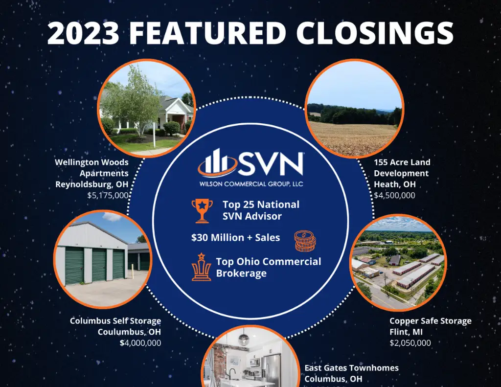 - Top Ohio Commercial Brokerage Award: Receiving the prestigious Top Ohio Commercial Brokerage Award is a crowning achievement for SVN Wilson in 2023. This honor not only highlights our commitment to excellence but also acknowledges our significant contributions to the dynamic commercial real estate sector in Ohio.