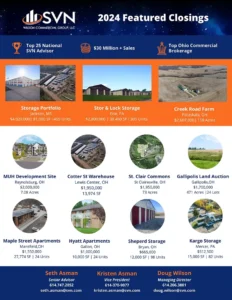 - Columbus Self Storage – Columbus, Ohio: The Columbus Self Storage closing highlights our adeptness in handling commercial properties aligned with the evolving needs of the market in Columbus, Ohio. It’s a testament to our strategic approach and adaptability in a dynamic real estate environment.